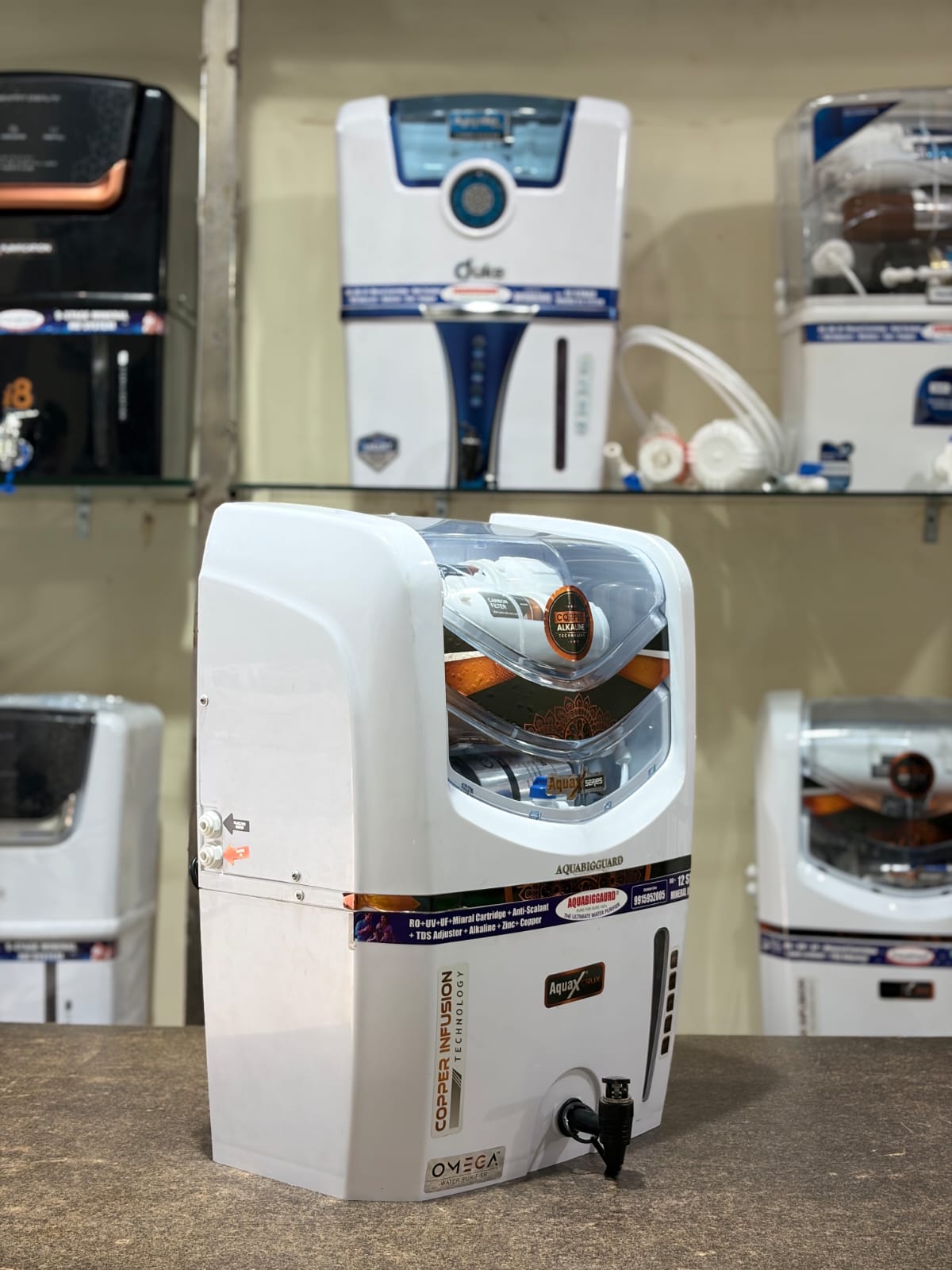 Aquabigguard Crux RO+UV+UF+COPPER+ TDS CONTROLLER 15 L RO + UV + UF + Copper Water Purifier (White)